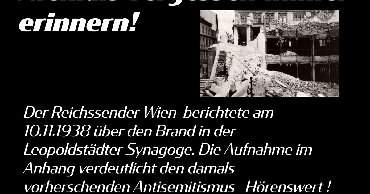 In der Nacht vom 9. auf den 10. November 1938 und am darauffolgenden Tag kam es im gesamten Deutschen Reich zu massiven antisemitischen Ausschreitungen. Es existieren kaum Rundfunkaufnahmen diese eine aus Wien eine Ausnahme: Der US-Amerikaner Eldon Walli berichtet am 10. November 1938 für den…